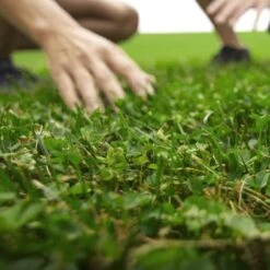 Anthemis nobilis (Roman Chamomile), Bellis perennis (English Daisy), Chrysanthemum multicaule (Daisy), Chrysanthemum paludosum (Creeping Daisy), Eschscholzia caespitosa(Dwarf California Poppy), Festuca ovina (Sheep Fescue), Lobularia maritima (Sweet Alyssum), Nemophila maculata (Five Spot), Nemophila menziesii (Baby Eyes), Saponaria ocymoides (Soapwort), Thymus serphyllum (Creeping Thyme), Trifolium fragiferum(Strawberry Clover), and Viola cornuta (Johnny Jump-Up)