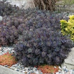 5″ tall x 8″ wide. Hymenoxys scaposa (Thrift-Leaf Perky Sue) is a wonderful everblooming yellow daisy that is both heat loving and drought tolerant. The foliage is evergreen and looks just like Armeria. A vigorous re-seeder, it quickly colonizes harsh areas of the garden. Perky Sue loves gravel mulch. We use it to interplant with cold hardy cacti. Provide lean, well-drained soil. Once established Hymenoxys scaposa is very xeric, needing little extra water. (seed propagated)
